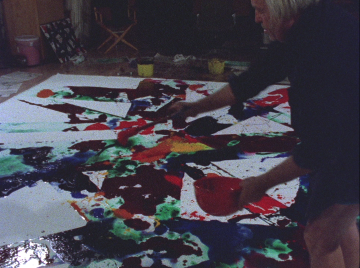 In 1978 Whitney was given the opportunity to film Sam at work: the idea was that he would document the creation of a single painting. Because he knew that Francis disliked the idea of the “cult of personality” Whitney knew that the film had to be focused mainly on Francis’ creative process. Using methods he had developed to film water – including the use of cameras that allowed filming at variable speeds – Whitney set out to capture Francis’ painting methods.